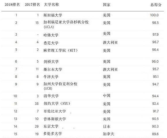 9月12日,英国教育机构Quacquarelli Symonds(简称QS)公布了2018年世界大学毕业生就业力排名。斯坦福大学在今年依旧保持榜首位置,加利福尼亚大学洛杉矶分校(UCLA)和哈佛大学紧随其后,均被美国大学包揽。清华大学以傲人的成绩位列榜单的第十名,成为亚洲排名最高的大学。
